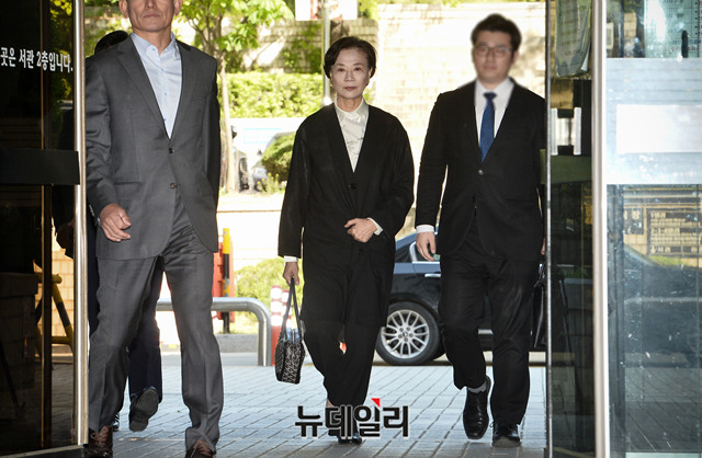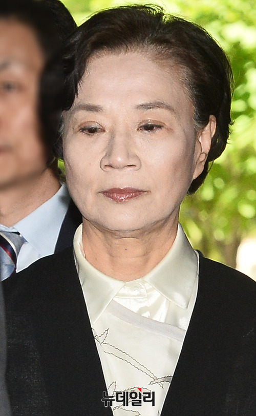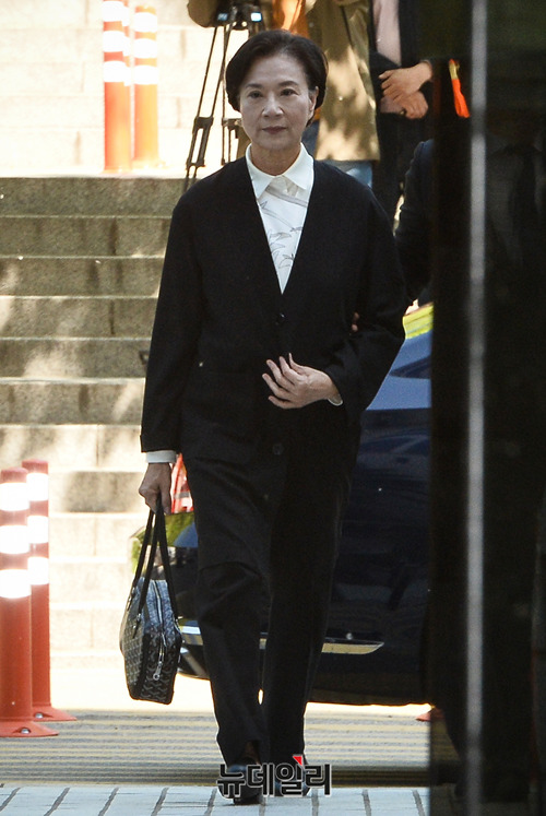 출입국관리법 위반 등 혐의를 받는 이명희 전 일우재단 이사장이 2일 오전 서울 서초구 서울중앙지방법원에 출석하고 있다. 이 전 이사장은 필리핀인 6명을 가사도우미로 불법 고용한 혐의를 받고 있다.