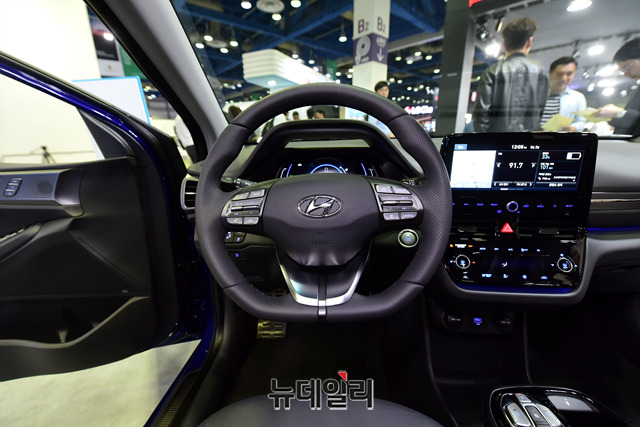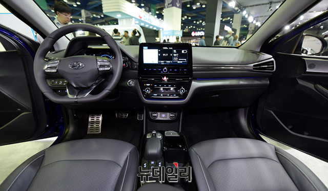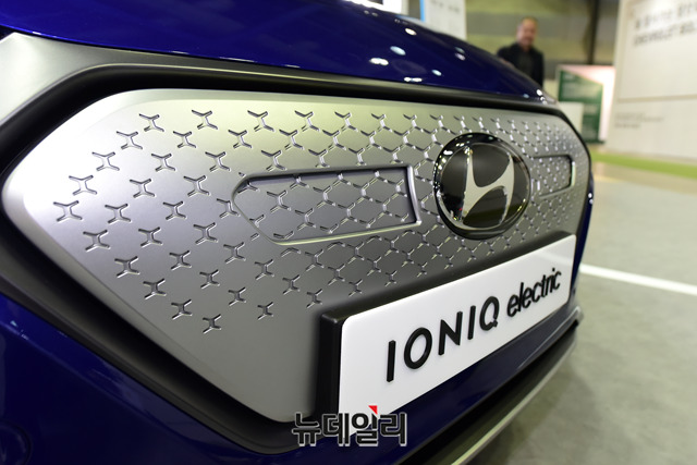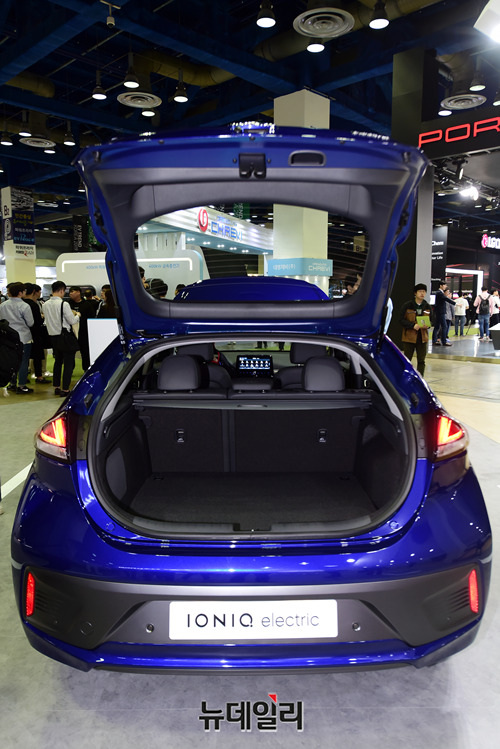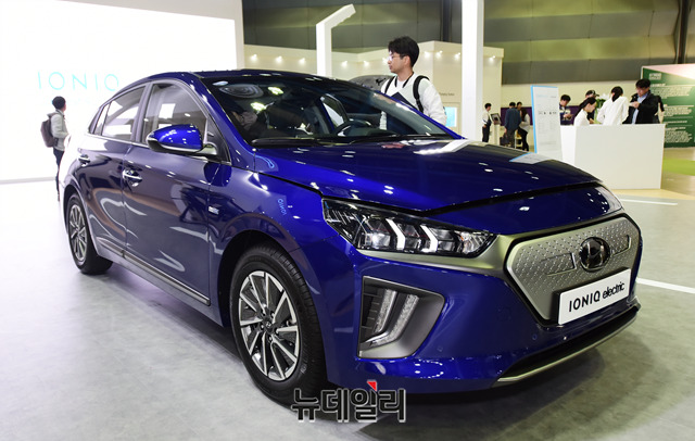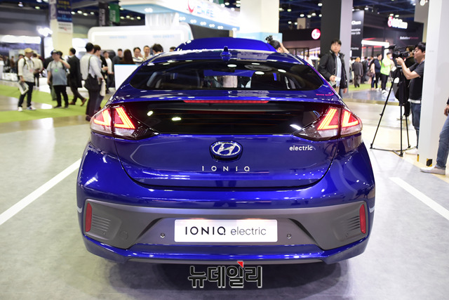 현대자동차가 2일 오후 서울 강남구 코엑스에서 열린 'EV 트랜드 코리아 2019'에서 전기차 '아이오닉(IONIQ)'을 선보이고 있다. 아이오닉은 1회 충전 시 271㎞를 주행할 수 있다.