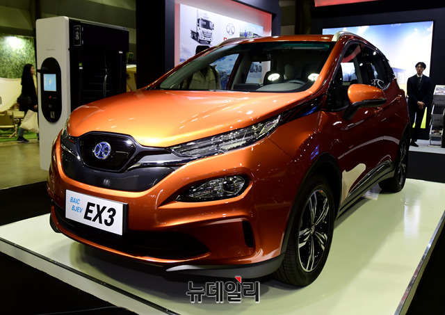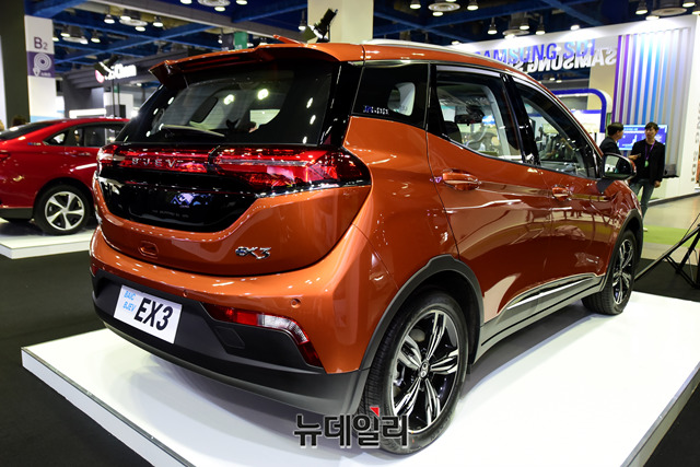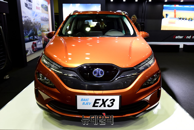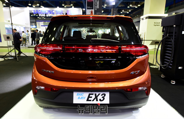 중국 북경자동차그룹이 2일 오후 서울 강남구 코엑스에서 열린 'EV 트렌드 코리아 2019'에서 소형 SUV 'EX3'를 국내 최초로 공개하고 있다. 'EV 트렌드 코리아 2019'는 전기차 민간보급 확대를 위해 정부 주도 하에 열리는 서울 유일의 전기차 엑스포다. 2일부터 5일까지 서울 코엑스에서 개최된다.