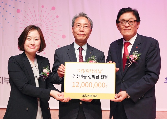 KB증권은 지난 17일 서울 건국대에서 열린 '제16회 가정위탁의 날 기념식'에 참여해 위탁가정 아동에게 나눔의 손길을 전했다고 20일 밝혔다.