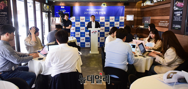 박대안 육우자조금관리위원장이 23일 오전 서울 강남구 육담와 삼성역점에서 기자간담회를 갖고 있다. 박 위원장은 이날 간담회를 통해 육우산업이 제대로된 산업으로 인정받고, 현장과 긴밀하게 소통해 산업을 이해할 수 있도록 하겠다고 밝혔다.