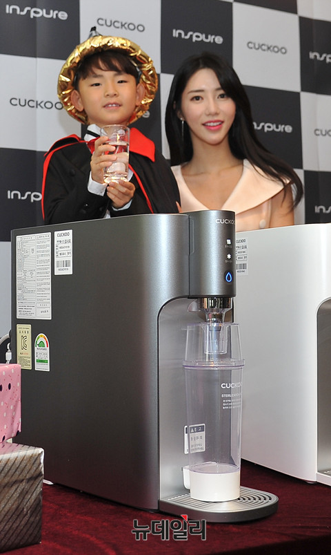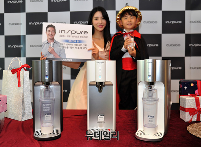 • 쿠쿠홈시스가 28일 오전 서울 중구 웨스틴조선호텔에서 인스퓨어의 신제품 '인앤아웃 직수 정수기 10'S'를 선보이고 있다.