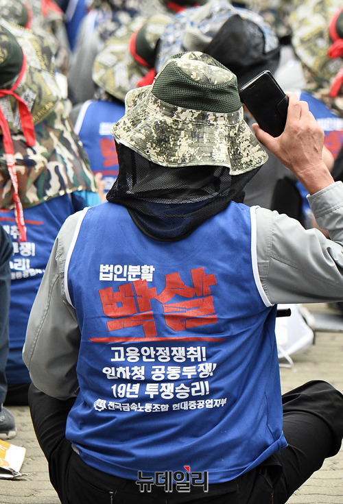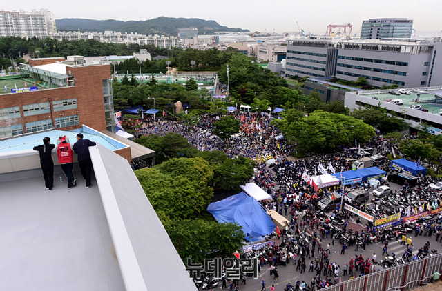 [포토] 임시주총 앞둔 현대중공업, 민노총 대거 합류