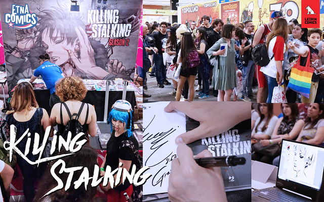 레진코믹스 웹툰 '킬링 스토킹'이 유럽의 대표적인 만화축제인 이탈리아 '에트나 코믹스 2019(ETNA COMICS 2019)'에서 현지 독자들의 뜨거운 호응을 받았다.13일 레진엔터테인먼트에 따르면 지난 6~9일 이탈리아 카타니아 지역에서 열린 '에트나 코믹스'에 레진코믹스 웹툰 킬링 스토킹의 쿠기 작가와 공식 초청을 받아 참석, 현지 팬들의 큰 호응을 얻었다.에트나 코믹스는 매년 이탈리아를 비롯 스페인 독일 영국 오스트리아 프랑스 등 유럽 전역의 만화팬들이 찾는 유럽의 대표적인 만화 페스티벌이다. 2011년 행사가 시작된 이래 해마다 인기를 거듭, 지난해에도 행사기간 중 8만명 이상의 만화팬과 업계 관계자들이 다녀간 대규모 국제 행사다.사인회에는 수많은 팬들과 기념 사진을 촬영하려는 팬들의 행렬이 행사기간 내내 이어지기도 했다. 또 레진이 현지 팬들을 위해 준비해 간 캐릭터 엽서와 마그넷 세트 등 웹툰 관련 굿즈가 큰 인기를 모았다.제2회 레진코믹스 세계만화공모전 대상 수상작인 킬링 스토킹은 비극적인 과거를 가진 연쇄 살인마와 이 사실을 모르고 그를 쫓던 스토커가 감금의 가해자와 피해자로 한 집에 머물게 되면서 전개되는 스릴 넘치는 웹툰이다. 현재 글로벌 웹툰플랫폼 레진코믹스를 통해 한국과 일본 미국에서 서비스 중이다.킬링 스토킹은 이탈리아에 이어 올봄 독일과 오스트리아에서 종이책으로 출간되고, 이달 초 국내에서도 단행본으로 선보였다. 하반기 스페인 프랑스에서도 현지 출판이 이뤄질 예정이다.