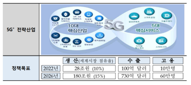 5G 전략 범국가적 추진체계 구축, 전략위원회 실행계획 수립스마트공장·자율주행차 등 5개 서비스와 차세대 스마트폰·로봇·드론 등 10개 산업 분야 핵심 전략산업5G 생태계 구축에 2023년까지 민관 30조 이상 투자 역량 결집