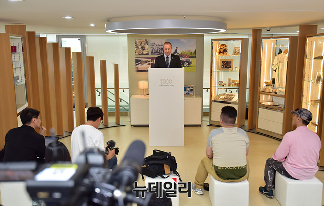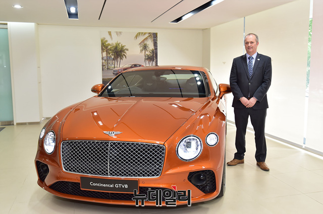 워렌 클락 벤틀리모터스코리아 총괄 매니저가 10일 오전 서울 강남구 벤틀리서울전시장에서 벤틀리모터스 설립 100주년을 기념해 열린 신형 GT V8 프리뷰 행사에서 인사말을 하고 있다.워렌 매니저는 "벤틀리모터스는 지난 2006년 럭셔리 자동차 브랜드 중 한국에 가장 먼저 진출해 한국에서 럭셔리 자동차 문화를 가꿔온 주역이라는 점에서자부심을 느끼고 있다"며 "한국의 럭셔리 자동차 문화를 한 차원 더 높은 단계로 이끌기 위한 노력을 더욱 강화해 나갈 것"이라고 밝혔다.올해 3월 최초로 공개된 벤틀리 컨티넨탈 GT V8은 아시아태평양 국가 중 한국에서 최초로 출시된다. 8월 계약을 시작해 2020년 초 고객에게 인도될 예정이다.