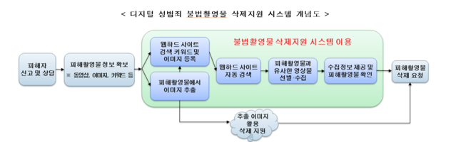 과학기술정보통신부는 22일부터 여성가족부의 '디지털 성범죄 피해자 지원센터' 업무에 인공지능(AI) 기술을 시험 적용하기로 했다고 밝혔다.과기정통부, 여가부, 지원센터, 한국전자통신연구원(ETRI)은 올해 초부터 협의체를 구성하고 인공지능 기술을 활용한 웹하드 사이트 '불법촬영물 삭제지원 시스템' 개발을 추진해 왔다.이번 시스템 개발은 기술개발 주체(ETRI)와 현장(지원센터)의 협업을 통한 성과물이다. ETRI는 지원센터의 요구사항을 도출하여 삭제지원 시스템의 기능을 설계·개발했으며, 지원센터는 기능 검증을 거쳐 22일부터 실제 업무에 시험적으로 활용하기로 했다.삭제지원 시스템은 인공지능 기술을 활용해 피해자가 신고한 불법촬영물에서 이미지를 추출, 웹하드 사이트에서 피해촬영물과 유사한 영상물을 자동으로 선별·수집하는 기능 등을 갖추고 있다.지원센터의 삭제지원 인력은 피해촬영물과 유사한 영상물의 이미지, 유사도, 제목, 주소(URL) 등 삭제지원 시스템을 통해 수집된 정보를 검토해 영상물을 확인하고, 피해촬영물 유포사례가 있을 경우 해당 웹하드 사이트에 삭제 요청을 하게 된다.현재 삭제지원 시스템을 통해 검색할 수 있는 국내 웹하드 사이트는 10개다. 이날부터 시험적으로 적용한 후 2019년 하반기에 35개 웹하드 사이트에 대한 검색기능을 추가 개발하여 지원센터 업무에 정식으로 적용할 예정이다.