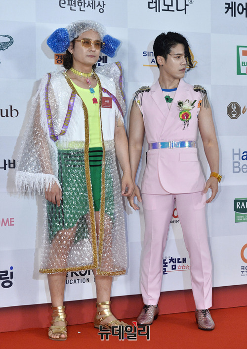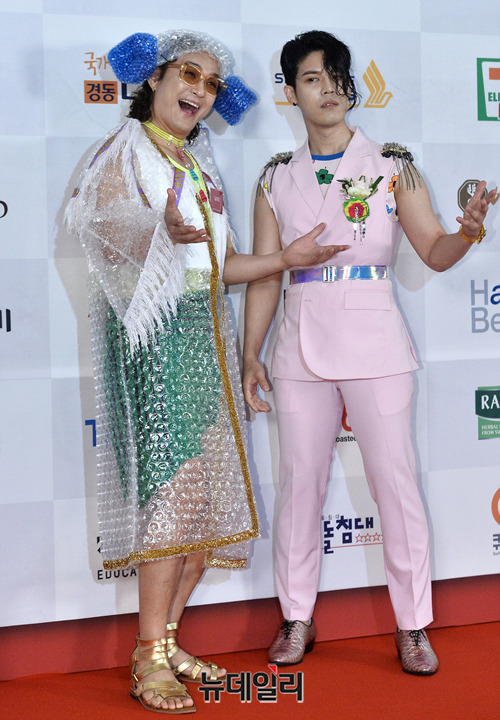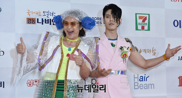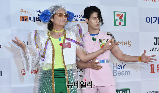 가수 노라조가 24일 오후 서울 중구 신라호텔에서 열린 '2019 올해의 브랜드 대상' 시상에 앞서 포토타임을 갖고 있다.'올해의 브랜드 대상'은 매년 브랜드 투표를 통해 한 해를 빛낸 최고의 브랜드를 선정하고 시상하는 행사다.