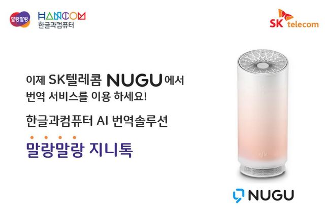 한글과컴퓨터는 SK텔레콤의 AI 스피커 '누구(NUGU)'에 자사의 인공지능 기반 번역 솔루션인 '지니톡'을 성공적으로 탑재, 본격적인 번역 서비스를 시작했다고 29일 밝혔다.SK텔레콤의 누구 사용자들은 자동업데이트를 통해 영어 번역기능을 사용할 수 있으며, 연내에 중국어와 일본어 번역서비스도 추가할 계획이다.한컴과 SK텔레콤은 지난해 10월 AI기반 통번역서비스 탑재를 위해 업무협약을 체결한 바 있다. 이후 지니톡 국제 공인 자동번역률 평가 LREC (International Conference on Language Resources and Evaluation) 사전 테스트를 진행한 결과, 높은 번역 정확도로 평균 94.8점을 얻었다.양사는 이번 번역 서비스를 시작으로 인공지능 기반의 다양한 분야로 협력을 확대해 나간다는 계획이다.