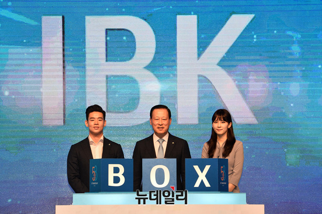 김도진 기업은행장과 'IBK BOX(박스)' 홍보대사가 1일 오전 서울 중구 기업은행 을지로 본점에서 열린 기업은행 창립 58주년 기념식에서 'IBK BOX' 그랜드 오프닝을 하고 있다.