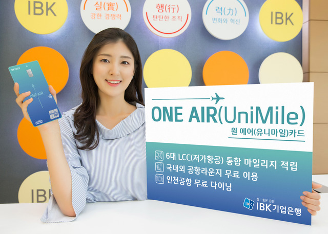 IBK기업은행이 국내 6대 저비용항공사(LCC)의 통합 포인트(마일리지)인 ‘유니마일’을 적립할 수 있는 신용카드 ‘원에어(유니마일)’을 출시했다고 3일 밝혔다.