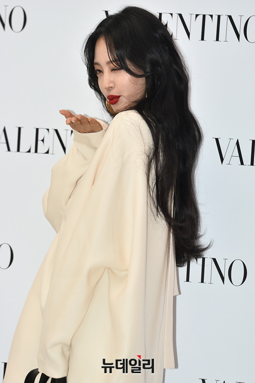 배우 한예슬이 5일 오후 서울 성동구 피어59 스튜디오에서 열린 '발렌티노(VALENTINO)' 2019·20 가을/겨울 컬렉션 이벤트에서 포토타임을 갖고 있다.