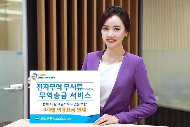 올해 12월 31일까지 무서류 무역송금 서비스 가입 후 우리은행과 업무를 처리하는 고객은 가입월 포함 3개월 간 본 서비스 이용에 따른 전자문서 전송료를 면제 받을 수 있다. 전자무역서비스 신규가입 후 무서류 무역송금 서비스를 이용하는 고객은 월 기본료까지 면제 가능하다.