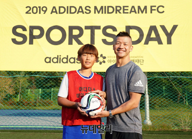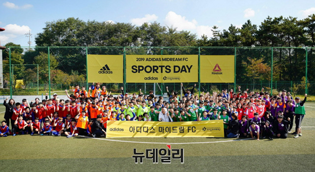 아디다스코리아가 19일 경기 평택시 물류센터에서 열린 2019 아디다스 '마이드림 FC' 연합운동회에서 기념촬영을 하고 있다. '마이드림 FC'은 아디다스코리아와 아이들과미래재단이 전문적인 스포츠 교육을 접하기 힘든 지역아동들에게 정기적 스포츠·인성 교육을 해주는 사회공헌사업이다. (사진=아디다스코리아)