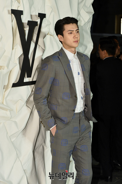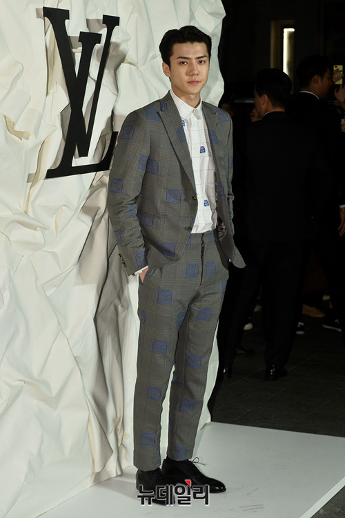 EXO 세훈이 30일 오후 서울 강남구 '루이 비통 메종 서울(Louis Vuitton Maison Seoul)'에서 열린 오픈 행사에서 포토타임을 갖고 있다.