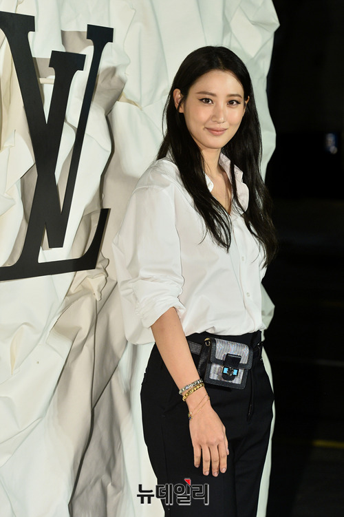배우 수현이 30일 오후 서울 강남구 '루이 비통 메종 서울(Louis Vuitton Maison Seoul)'에서 열린 오픈 행사에서 포토타임을 갖고 있다.