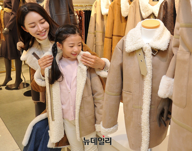 롯데백화점이 5일 오전 서울 중구 롯데백화점 본점 파슨스 매장에서 어머니와 자녀를 위한 여성용, 아동용 에코퍼 무스탕을 선보이고 있다.이번 무스탕은 천연 모피 대신 착한 소재로 알려진 '에코퍼(ECOFUR)'를 사용한 인조 무스탕이다. 여성용 롱무스탕은 밍크 느낌이 나는 에코퍼를 사용했다. 길이 110cm의 슬림핏 스타일로 제작됐다. 아동용은 성인과 비슷한 디자인에 양털 느낌의 에코퍼를 사용했다.가격은 여성용 에코퍼 롱 무스탕 199,000원(카멜/베이지/다크브라운)', 아동용 99,000원(카멜/베이지)이다.