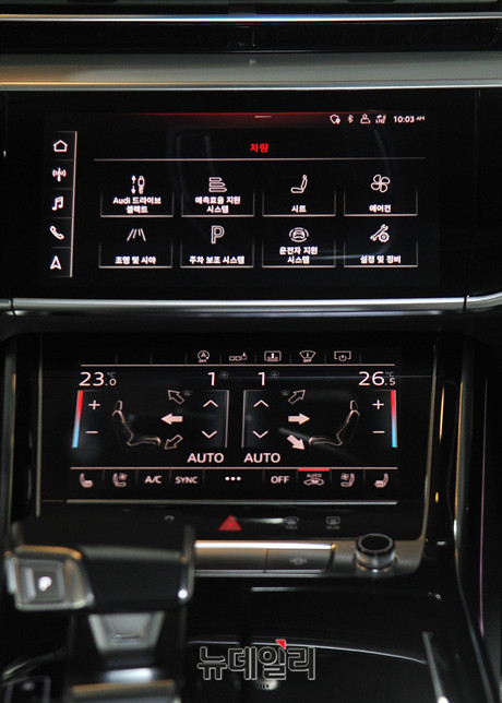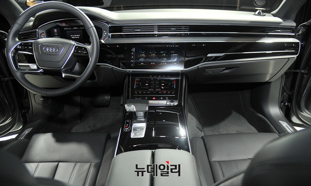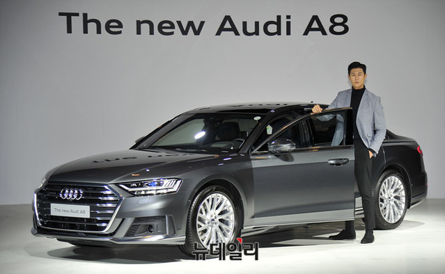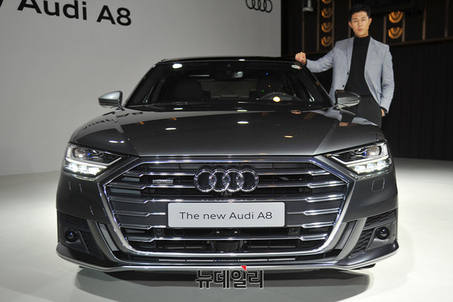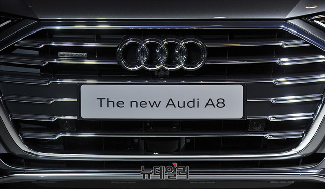 아우디코리아가 2일 오전 서울 중구 반얀트리 클럽&스파 서울에서 '더 뉴 아우디 A8 L 55 TFSI 콰트로'를 선보이고 있다.'더 뉴 아우디 A8 L 55 TFSI 콰트로'는 3.0L V6 가솔린 직분사 터보차저 엔진 및 8단 팁트로닉 자동변속기를 탑재해 최고출력 340마력, 최대토크 51Kg.m을 발휘한다. 또한 햅틱 피드백이 적용된 '듀얼 터치 스크린 내비게이션', '어댑티브 크루즈 어시스트', '아우디 커넥트' 등 안전·편의 사양이 탑재된 것이 특징이다. 판매 가격은 147,328,000원.