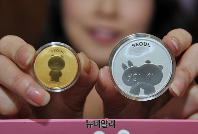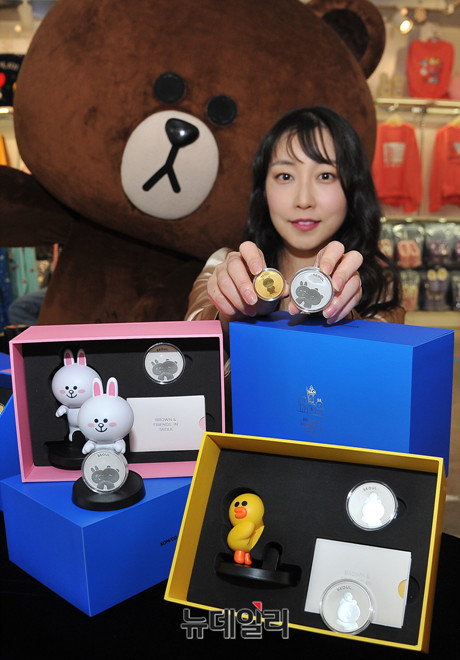 한국조폐공사가 출시한 기념메달은 라인프렌즈의 인기 캐릭터 브라운, 코니, 샐리 피규어와 결합된 금 1종(브라운), 은 2종(코니, 샐리)으로 출시된다. 가격은 금(브라운) 143만원, 은(코니, 샐리) 각 15만원이다. 총 8,888개 한정 판매.