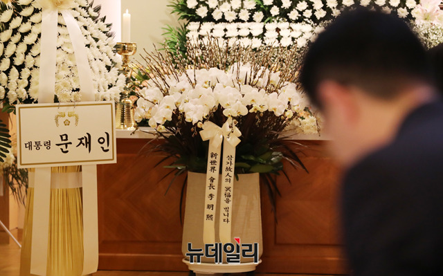 [포토] 故 김우중 빈소에 마련된 '문재인-이명희' 조화