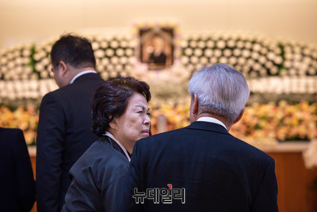 [포토] 조문객 맞이하는 정희자 전 힐튼호텔 회장