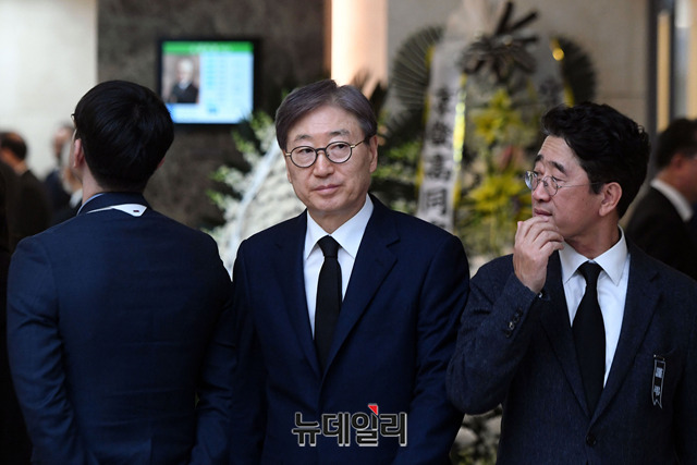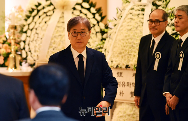 윤부근 삼성전자 부회장이 10일 오후 경기 수원시 아주대학교병원 장례식장에 마련된 故 김우중 전 대우그룹 회장의 빈소를 찾고 있다.