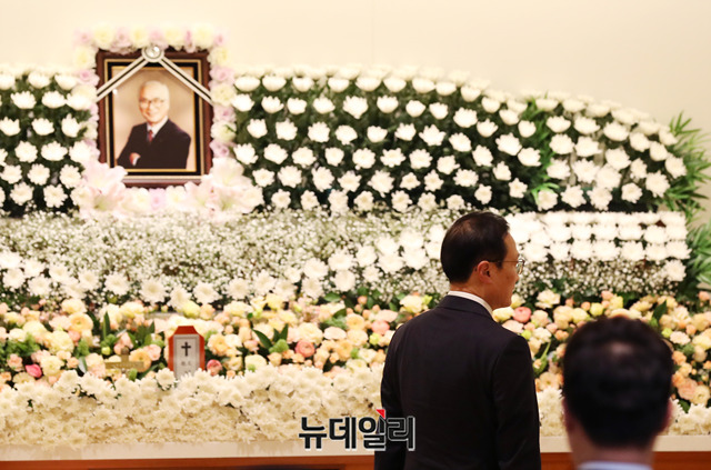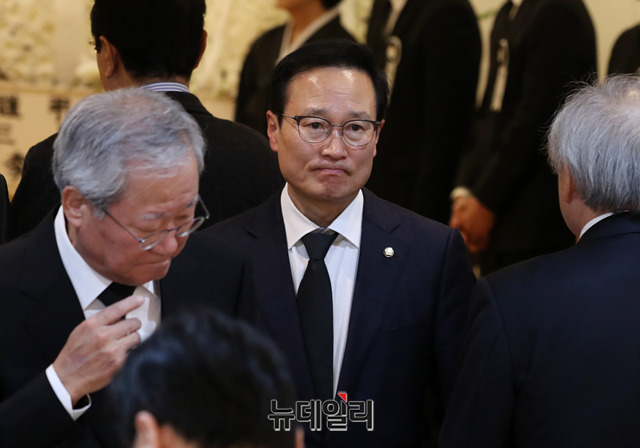 홍영표 더불어민주당 의원이 10일 오후 경기 수원시 아주대학교병원 장례식장에 마련된 故 김우중 전 대우그룹 회장의 빈소를 찾고 있다. (경기 수원=박성원 기자)
