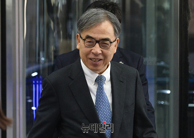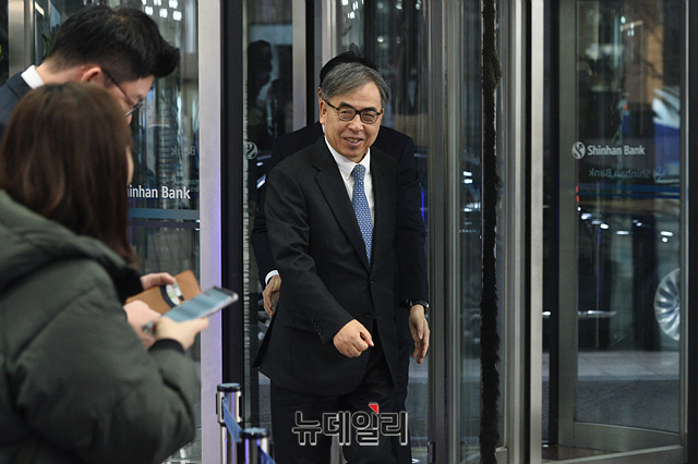 이만우 사외이사 겸 신한금융그룹 회장후보추천위원회(회추위) 위원장이 13일 오전 서울 중구 신한금융지주회사 본사에서 열린 회장 면접에 입장하고 있다.