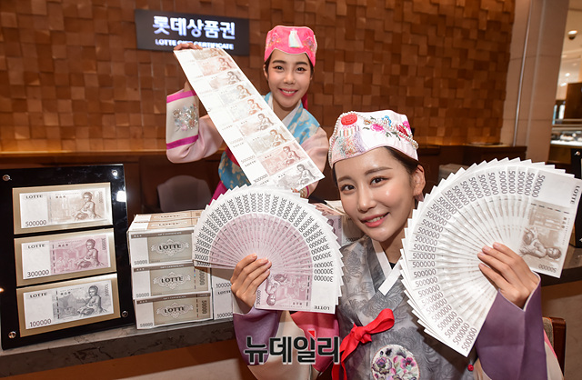 상품권 패키지는 300만원, 1,000만원, 5,000만원, 1억원으로 구성됐다. 구매 금액과 결제 방식에 따라 0.5%~3.5%에 해당하는 롯데상품권을 추가로 증정한다. 1인당 1일 구매 한도는 1억원이다. 23일부터 롯데백화점 전 점포에서 한정 판매한다.