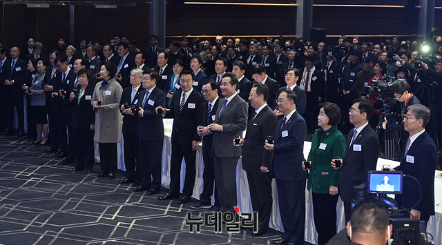 [포토] 2020년 경제계 신년인사회, 건배하는 '이낙연-박용만'