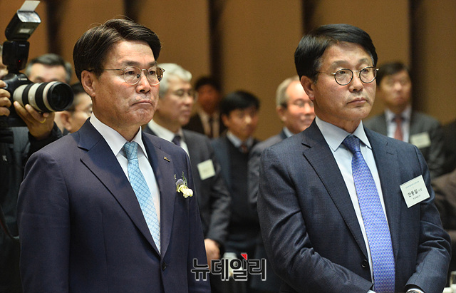 최정우(포스코 회장) 철강협회 회장이 10일 오후 서울 강남구 포스코센터에서 열린 '2020년 철강업계 신년인사회'에서 정승일 산업통상자원부 차관의 축사를 경청하고 있다.