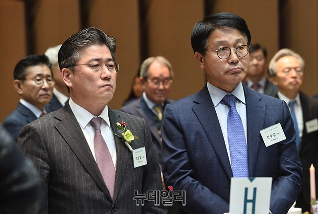 [포토] 최정우 회장 축사 경청하는 '정승일-안동일'