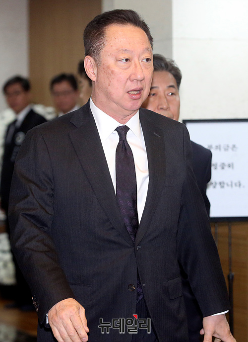 박용만 대한상공회의소 회장이 20일 오전 서울 송파구 서울아산병원 장례식장에 마련된 故 신격호 롯데그룹 명예회장의 조문을 마친 뒤 빈소를 나서고 있다.