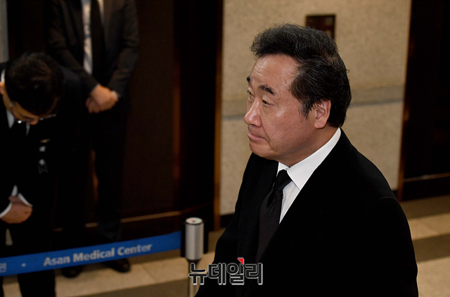 이낙연 전 국무총리가 20일 오후 서울 송파구 서울아산병원 장례식장에 마련된 故 신격호 롯데그룹 명예회장의 빈소를 찾아 조문을 마치고 취재진의 질문에 답하고 있다.