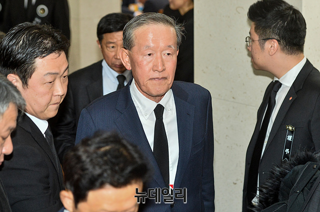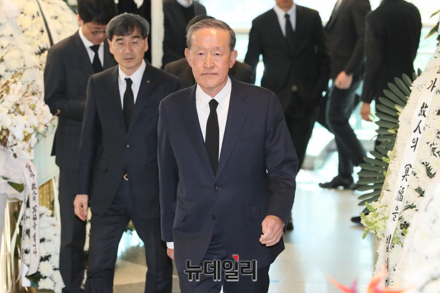 허창수 전경련 회장이 21일 오후 서울 송파구 서울아산병원 장례식장 마련된 故 신격호 롯데그룹 명예회장 빈소에서 조문을 마친 뒤 장례식장을 나서고 있다.