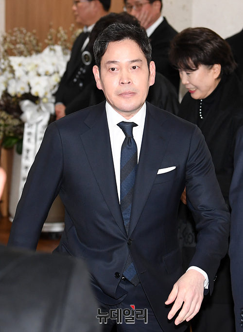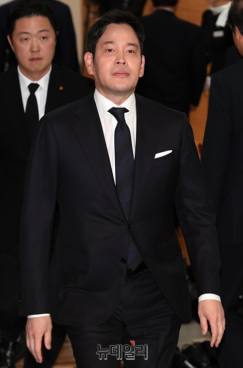 정용진 신세계그룹 부회장이 21일 오후 서울 송파구 서울아산병원 장례식장에 마련된 故 신격호 롯데그룹 명예회장의 빈소를 찾아 조문한 뒤 빈소를 나오고 있다.