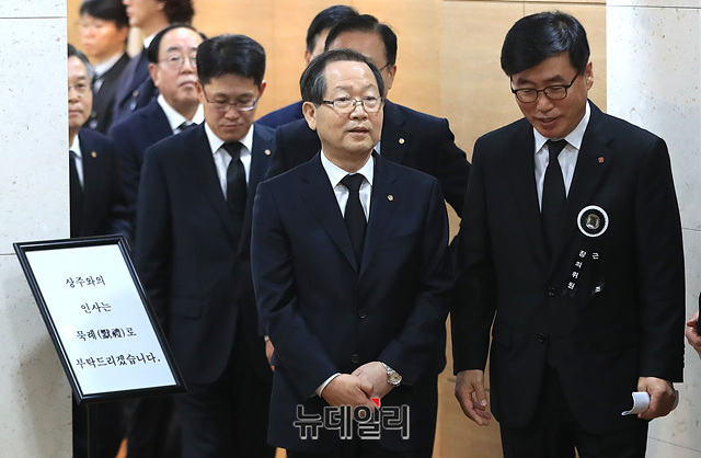 금춘수 한화그룹 부회장이 21일 오후 서울 송파구 서울아산병원 장례식장에 마련된 故 신격호 롯데그룹 명예회장의 빈소를 찾아 조문한 뒤 빈소를 나오고 있다.