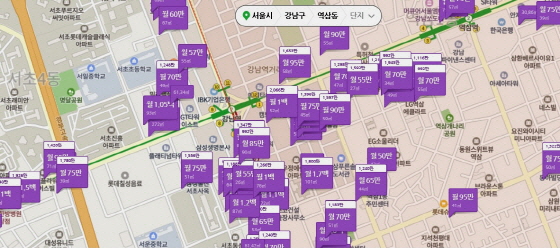 KB부동산 리브온에 따르면 7일 기준 전용 20㎡ 월세시세는 보증금 1000만원에 90만~95만원선에 책정돼 있지만 네이버 부동산정보에는 보증금 1000만원에 100만원 매물이 가장 많았다.