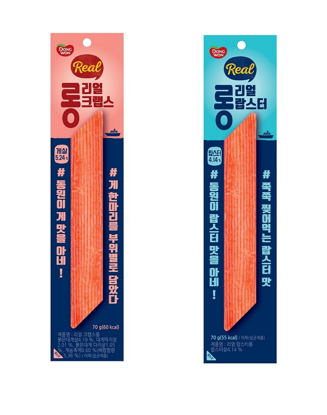 동원F&B가 기존보다 2.5배 이상 길어진 20cm 길이의 ‘리얼 롱 맛살’ 2종(리얼크랩스 롱, 리얼랍스터 롱)을 출시했다고 20일 밝혔다.동원F&B의 리얼크랩스와 리얼랍스터는 각각 청정해역에서 자란 진짜 게살과 랍스터살을 넣어 원물의 맛이 그대로 살아있는 맛살 제품이라는게 회사측 설명이다. 기존의 7.5cm 길이를 2.5배 이상 늘린 20cm 길이로 만들었다.리얼 롱 맛살 2종은 고단백 저지방 식품으로 간편하게 바로 먹는 영양 간식은 물론 안주용으로 알맞다. 소용량 구성으로 샐러드, 파스타, 김밥 등 다양한 요리의 재료로 한번에 사용할 수 있어 싱글족이나 맞벌이 부부가 활용하기 좋다.