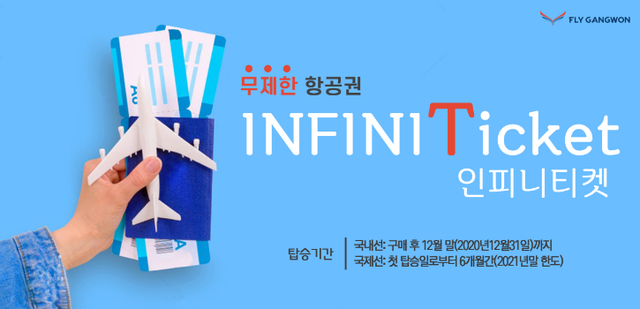 ‘인피니 티켓’은 회원권 개념의 프로모션이다. 플라이강원이 취항하는 국제, 국내선을 6개월간 무제한으로 탑승할 수 있다.
