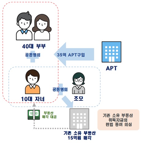 3차 조사 결과를 보면 먼저 소득이 없는 미성년 자녀에 대한 편법증여 의심사례가 적발됐다. 10대인 A씨는 조모와 공동명의로 보유하던 15억원대 주택을 팔아 부모와 공동명의로 강남구 소재 35억원상당의 아파트를 구입했다.