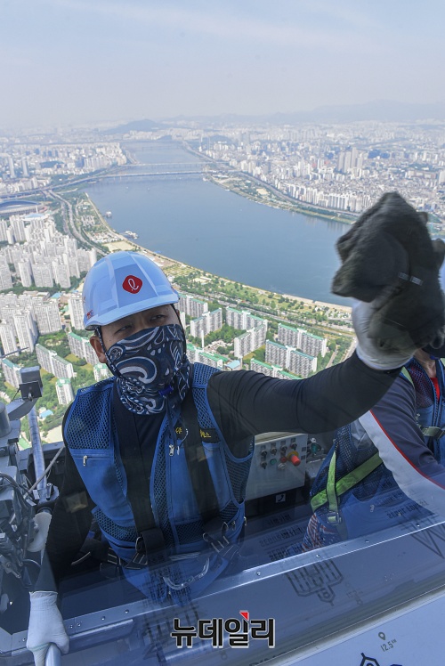 [포토] 롯데월드타워, 3개월 걸리는 123층 유리창 대청소 공개