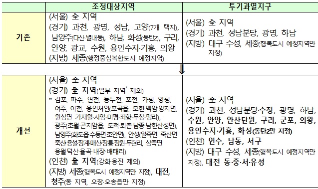 먼저 수도권을 비롯한 대전·청주 대부분 지역을 조정대상지역 또는 투기과열지구로 묶고, 개발호재 상승우려지역인 서울국제교류협력지구 인근을 토지거래허가구역으로 지정키로 했다.