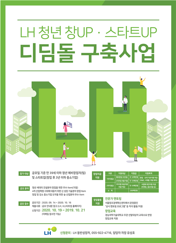 한국토지주택공사(LH)가 청년들의 창업역량을 펼칠 수 있는 장을 마련하기 위해 'LH 청년 창UP·스타트UP 디딤돌 구축사업'을 추진한다고 14일 밝혔다.