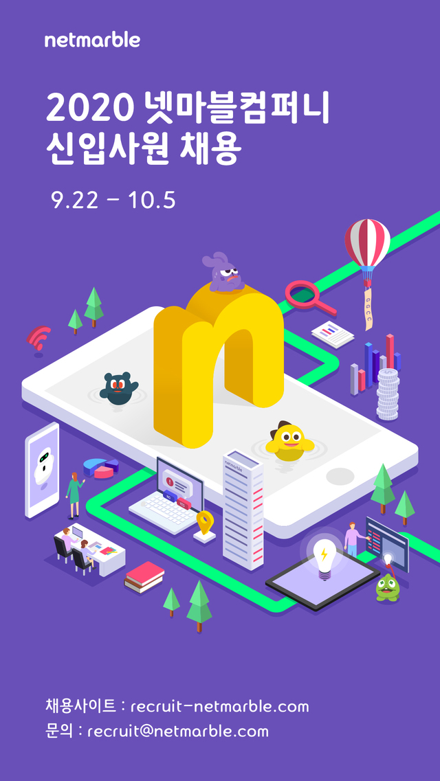 넷마블 및 개발자회사 등 총 5개사 참여퍼블리싱 및 게임제작 분야 등 14개 직군 인재 선발10월 5일까지 서류접수…21년 1월 입사 예정