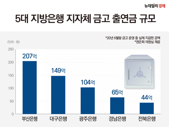지역 내 '안방금고' 지키기 위해 향토은행 고군분투지방은행 모두 사업비 70% 이상 광역시에 집중 출연부산은행 출연금 207억…하나·국민은행과 맞먹어