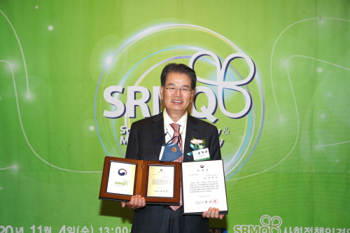 이날 시상식에는 사회적책임(SR) 부문과 경영품질(MQ) 부문에서 각각 대상 및 부문 대상을 시상하고, 유공자포상 부문에는 최고경영자 대상 및 유공자상을 시상했다. 권 회장은 부총리겸 기획재정부 장관상으로 유공자포상 부문 최고경영자 대상을 수상했다.