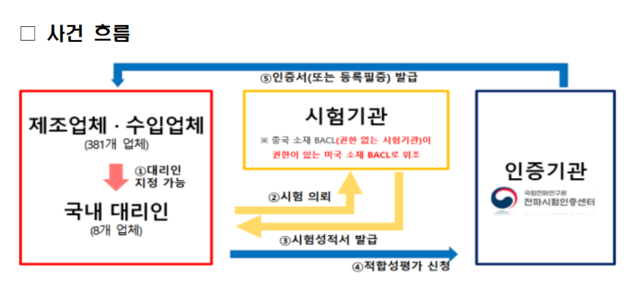 과기정통부는 미국과의 상호인정협정에 따라 미국 국립표준연구소(NIST)의 지정 절차를 거쳐 미국 소재 BACL 시험소에 대해 시험권한을 부여했다. 하지만 상호인정협정 등 지정 절차를 거치지 않은 중국 소재 BACL 시험소는 시험권한이 없고, 시험성적서 또한 효력이 없다.
