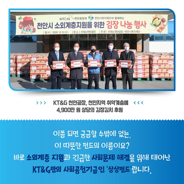 [카드뉴스] KT&G, 상상펀드로 소외계층·지역사회에 나눔 활동 펼쳐