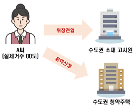 #.충청도에 거주하는 국가유공자 유족 A씨는 입주자모집 공고일 직전 수도권내에 위치한 고시원으로 단독 전입한후 수도권내 분양주택의 국가유공자 특별공급에 당첨돼 분양계약을 체결했다. 계약직후 원주소지인 충청도로 주소지를 다시 이전했다. 이에 위장전입에 의한 부정청약이 의심돼 경찰에 수사의뢰됐다.